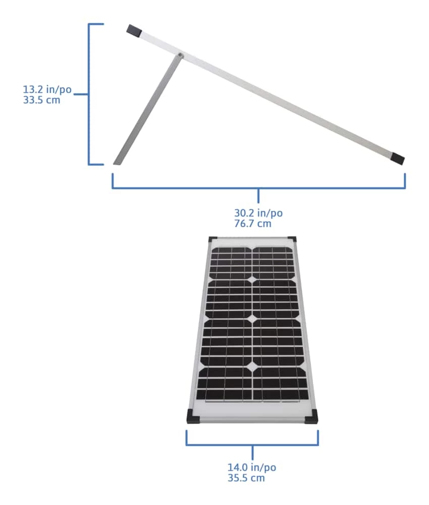 - Panel features high efficiency crystalline solar cells and a durable metal frame for extended outdoor use