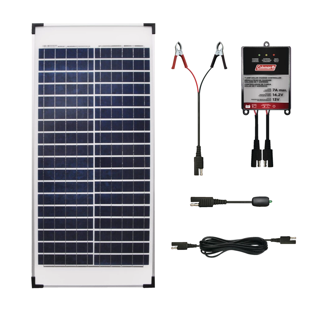 - Includes 7 Amp charge controller to protect the 12 Volt battery from overcharging