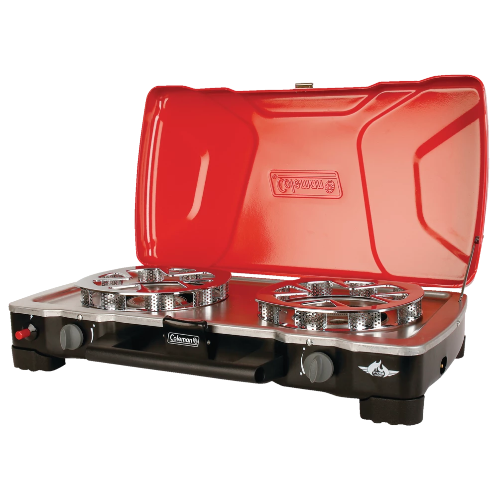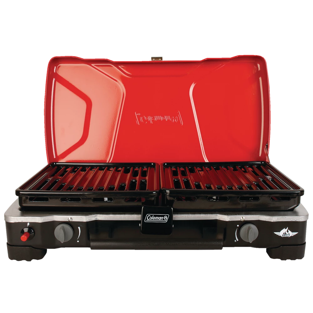 - Coleman FyreSergeant 2-Burner Grill Stove can operate as full size grill, grill/stove or 2 burner stove
