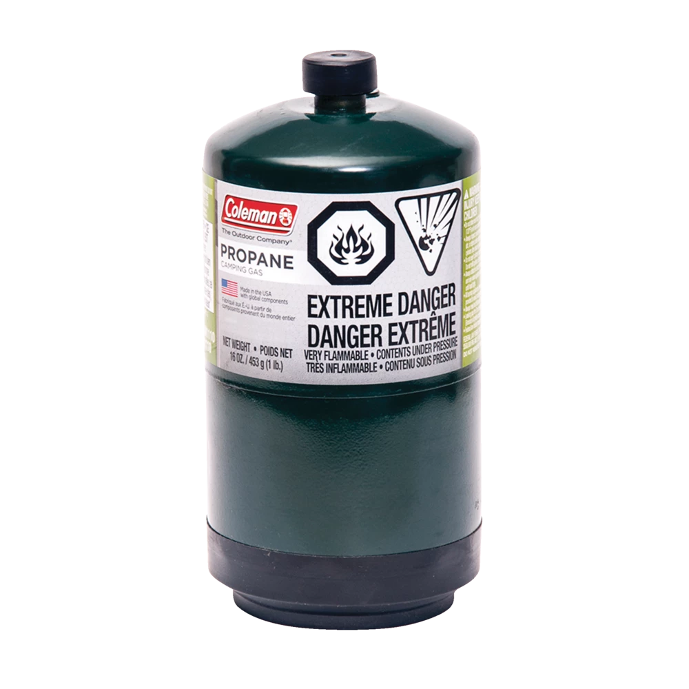 Fuel all your campground propane devices with the 16 oz Coleman Propane Cylinder. This pressurized cylinder is ready to use, without the need to pump or pour your fuel. The replaceable cap ensures your connection is protected in transport, and the compact size makes it easy to pack and light enough to take with you on the trails. (Remember to pack it out with you.)
