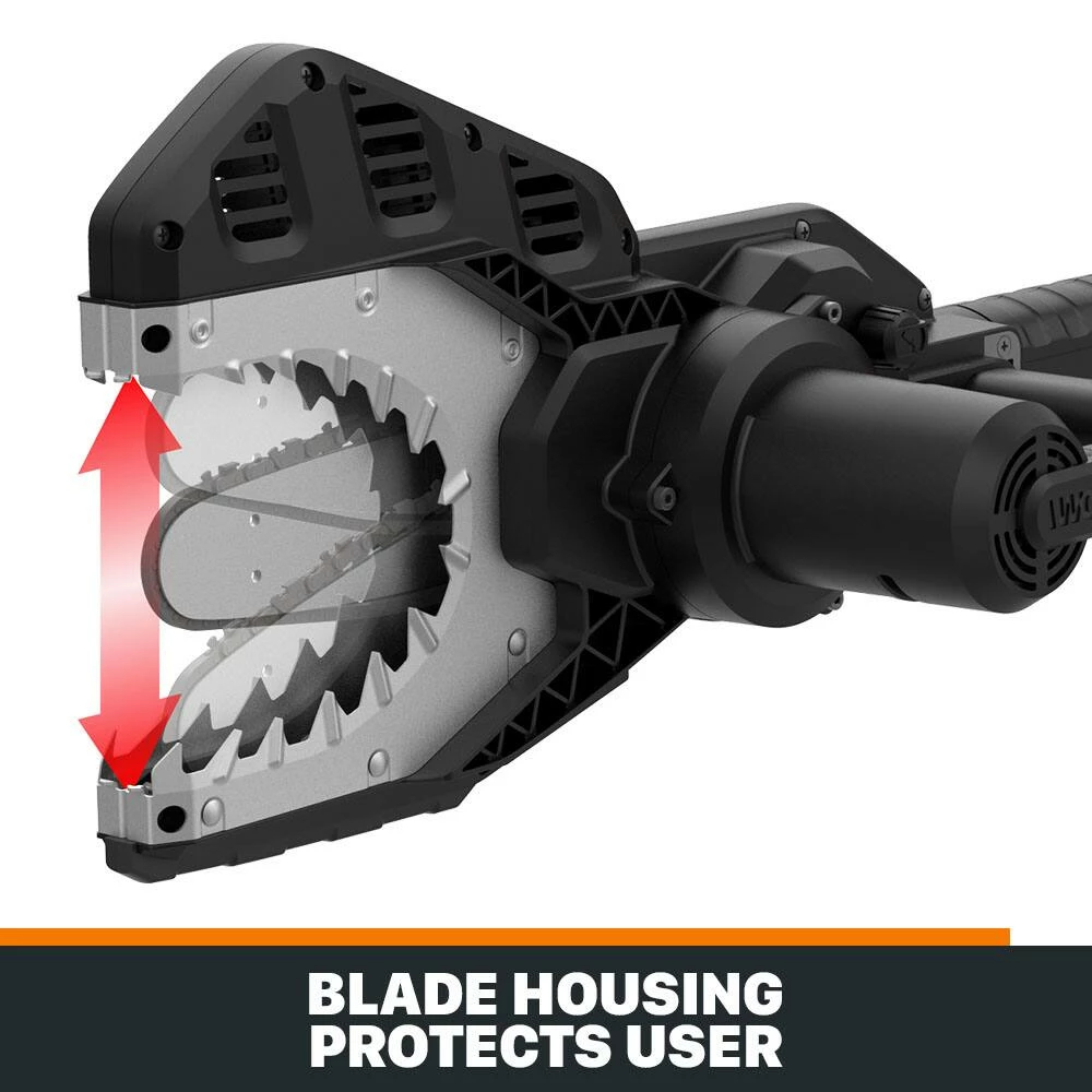 - Worx 20V Cordless Jaw Saw features a fully protective guard and when not in use, the blade retracts into the base