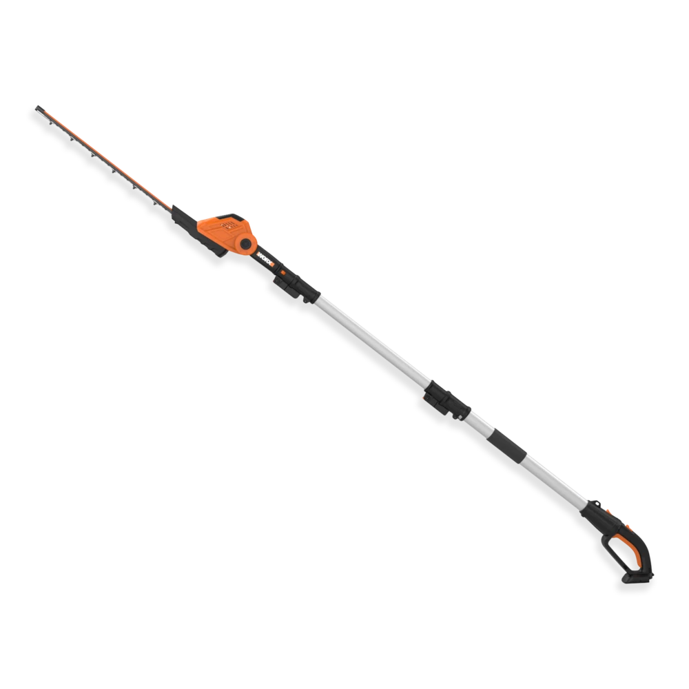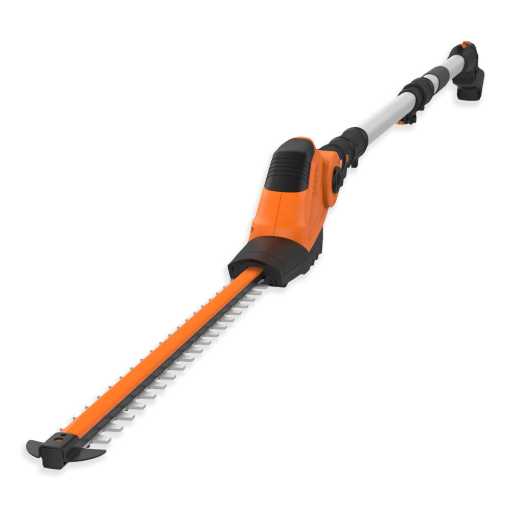 - 2-in-1 capabilities allow this hedge trimmer to be adjusted from a straight traditional trimmer to a telescopic pole attachment