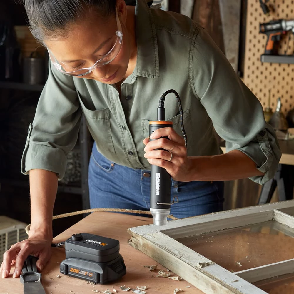 - Tools Included: MakerX Hub, 20V 2Ah Power Share battery, Rotary Tool, Mini Heat Gun, Air Brush, Wood and Metal Crafter, Angle Grinder